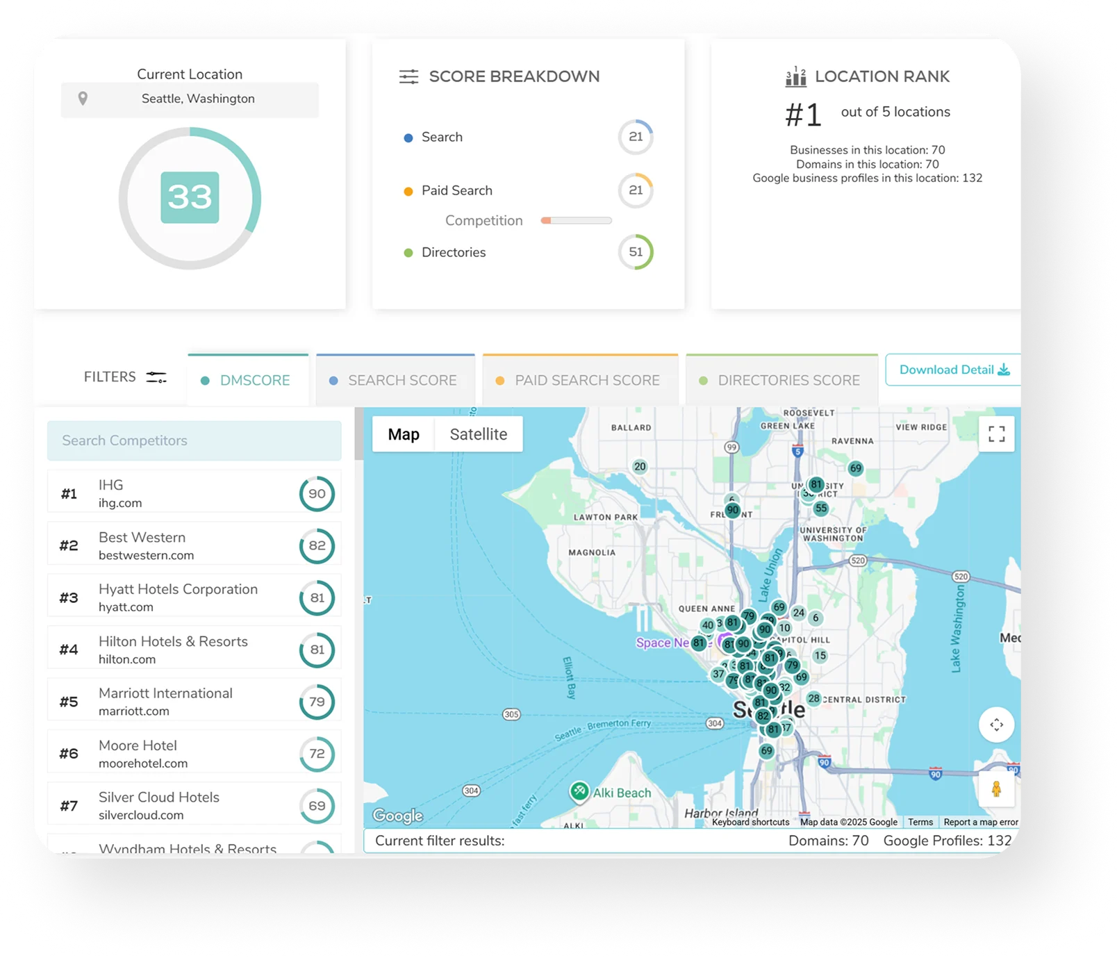 Benchmarks change behavior. DMscore gives hotel owners one number to align owners, operators and brands on where attention is won before the click.