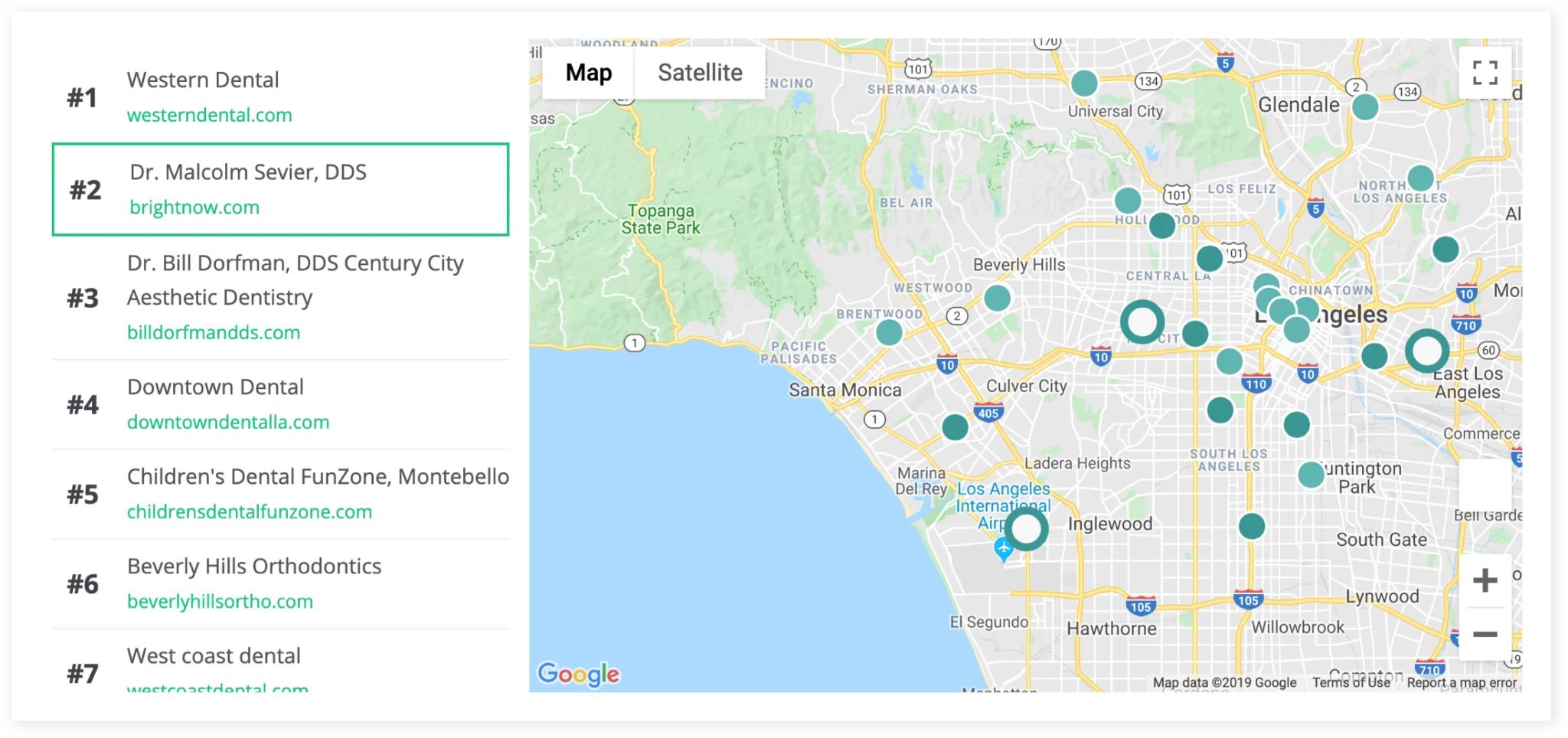 We provide marketing intelligence of competing dental offices in your city and rank them by DMscore.
