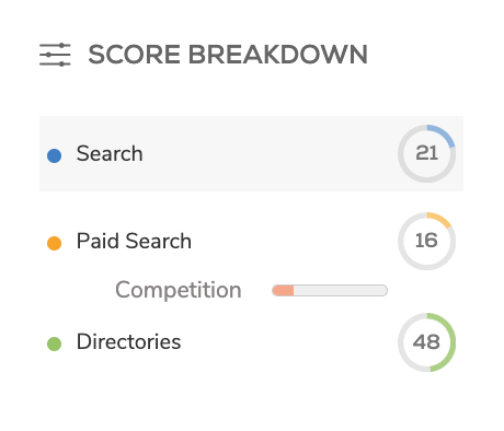 - PPC (incl. OTA PPC): Paid presence relative to competitors and OTA ads (rolled into the overall PPC score).