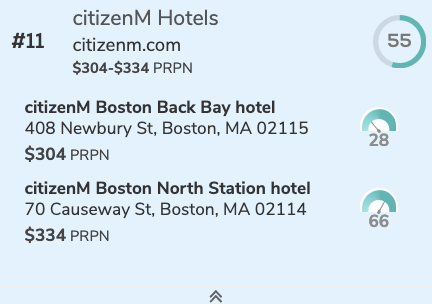 With Market Insights you can rank cities by DMscore, then drill into hotels to spot upside.